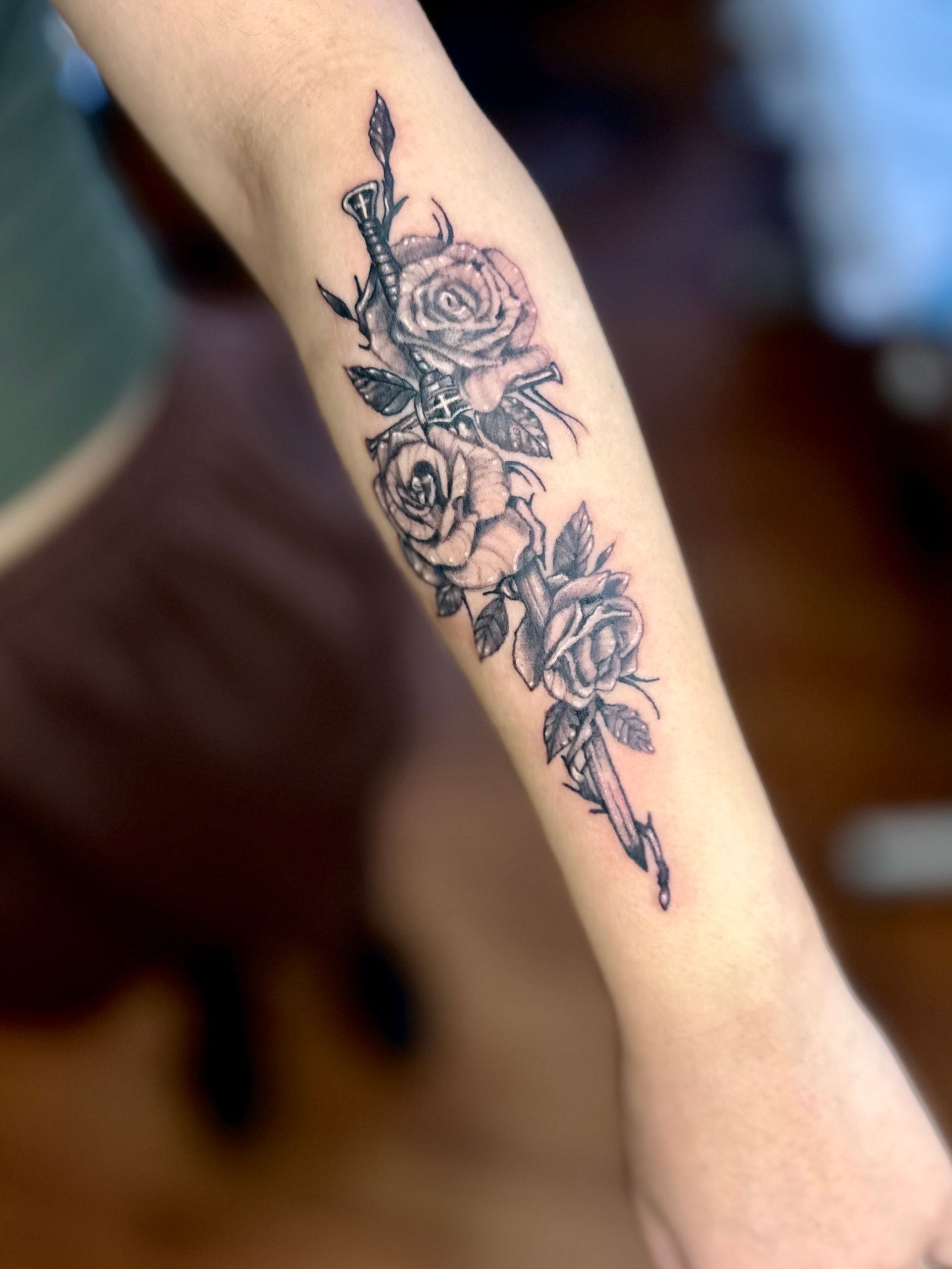 Starting in 2022, Garlyn started her apprenticeship with Spellbound around 3 years ago. With 2 years of full time tattoo experience, she has developed a strong passion for working with color in her tattoos, but also enjoys black and grey and fineline tattooing. Though she is newer to the tattoo industry, she is eager to create more bright, colorful tattoos, and to continue to hone her craft with each new piece she takes on.