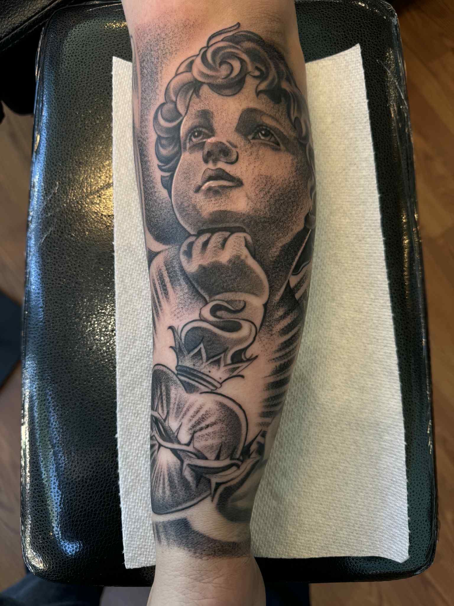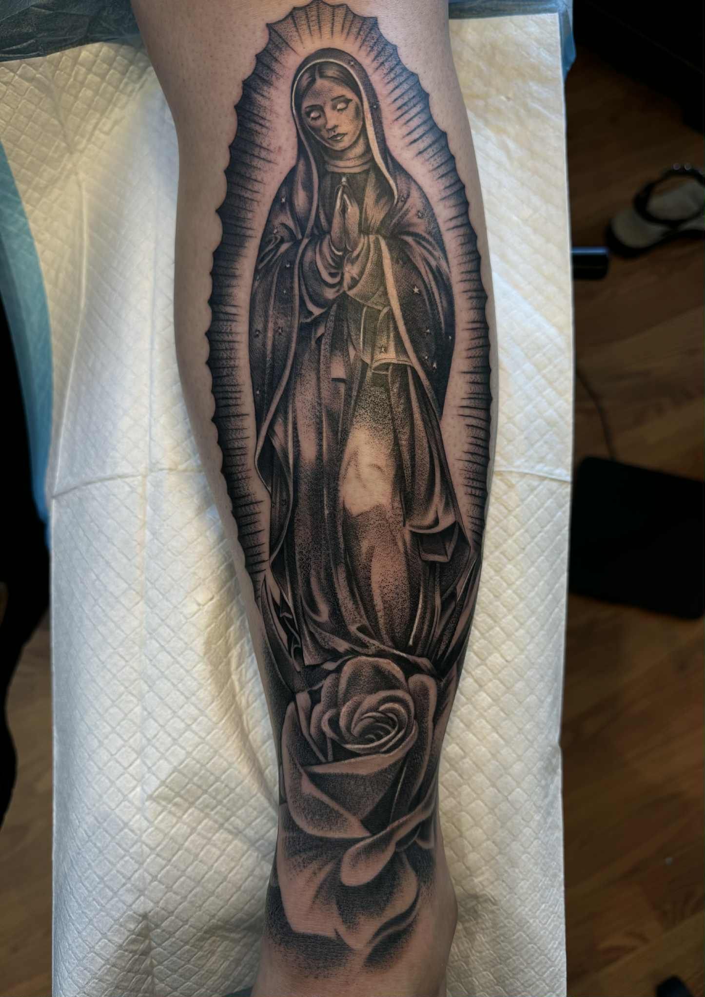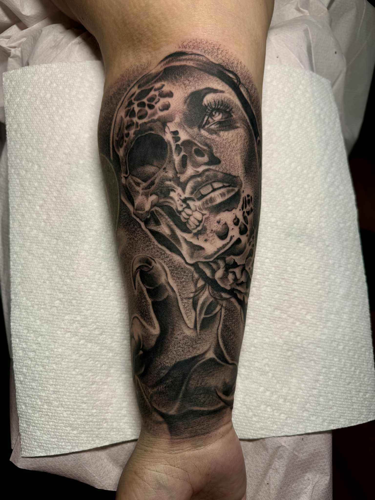 My name is Rudy Romero, and I’m a tattoo artist based in Pueblo, Colorado. I just recently join the Spellbound Team, where I focus on black and grey realism, Chicano style artwork and illustrative black and grey styles. My goal is to create work that not only looks clean and solid, but also carries depth and meaning for each person I tattoo. Tattooing, for me, is more than just an art form—it’s a way to tell stories, express identity, and create something permanent that people are proud to wear. Whether it’s a portrait, a custom concept, or something deeply personal, I take the time to understand what each client is looking for and bring that vision to life with precision and respect. I’m always working to grow and refine my technique, pushing myself to make every piece better than the last. If you’re into detailed black and grey work, and want a professional experience from start to finish, I’d be honored to work with you.